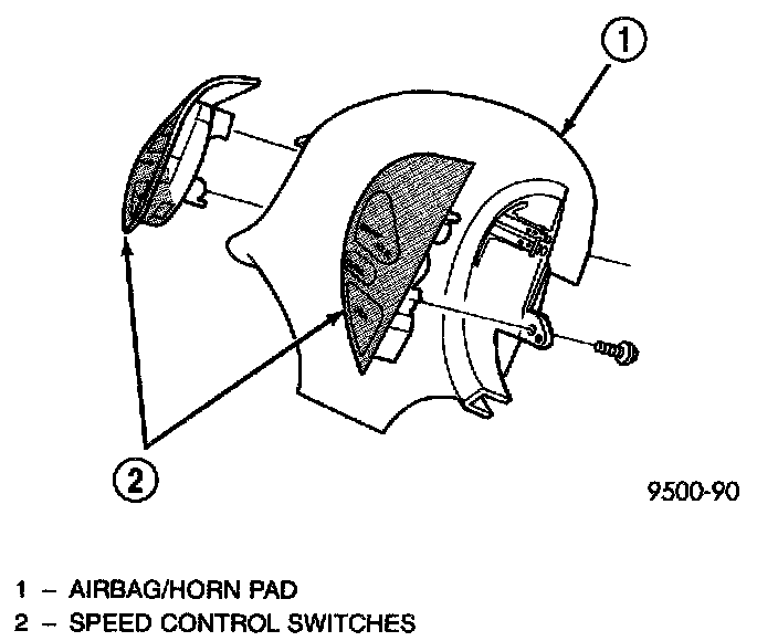 2. Install screws holding speed control switch to airbag/horn pad.