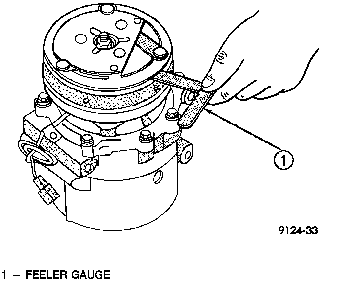 After a new compressor clutch has been installed, cycle the compressor clutch approximately twenty times (five seconds on, then five seconds off). During this procedure, set the heater-A/C control to the recirculation mode (Max-A/C), the blower motor switch in the highest speed position, and the engine speed at 1500 to 2000 rpm. This procedure (burnishing) will seat the opposing friction surfaces and provide a higher compressor clutch torque capability.