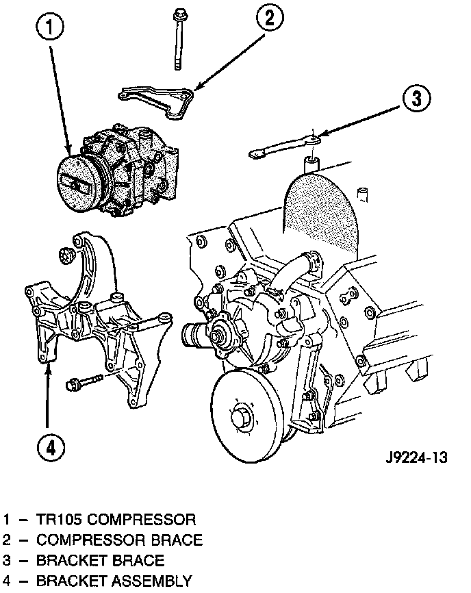 2. Position the compressor brace to the compressor and the engine intake manifold.