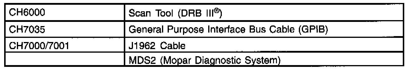THE MDS2 AND DRB III(R) ARE REQUIRED TO PERFORM PART OF THIS REPAIR, WHEN USING THE MDS2 AND THE DRB III(R), THE SYSTEM MUST BE OPERATING AT CIS CD 2069 OR HIGHER (SEE THE TABLE).