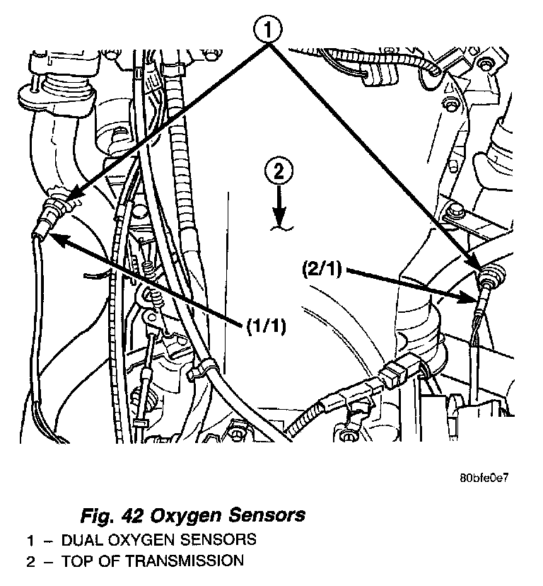Fig. 44 Oxygen Sensors - 5.2/5.9L (CAL):