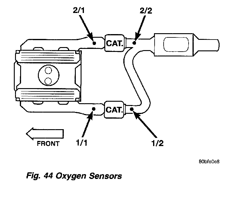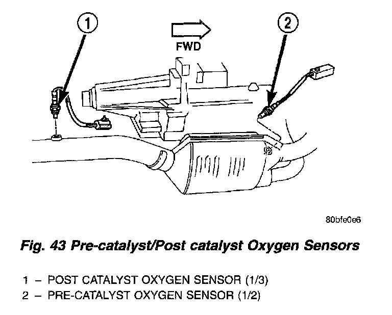 Fig. 43 Pre-Catalyst/Post-Catalyst Oxygen Sensors - 8.0L (CAL):