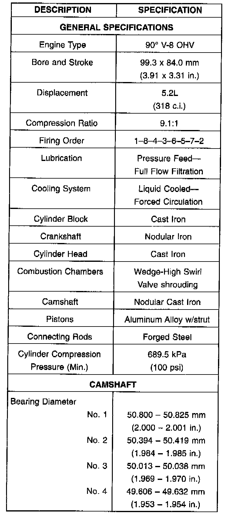 RAM 2500 Truck 2WD V8-5.2L VIN Y