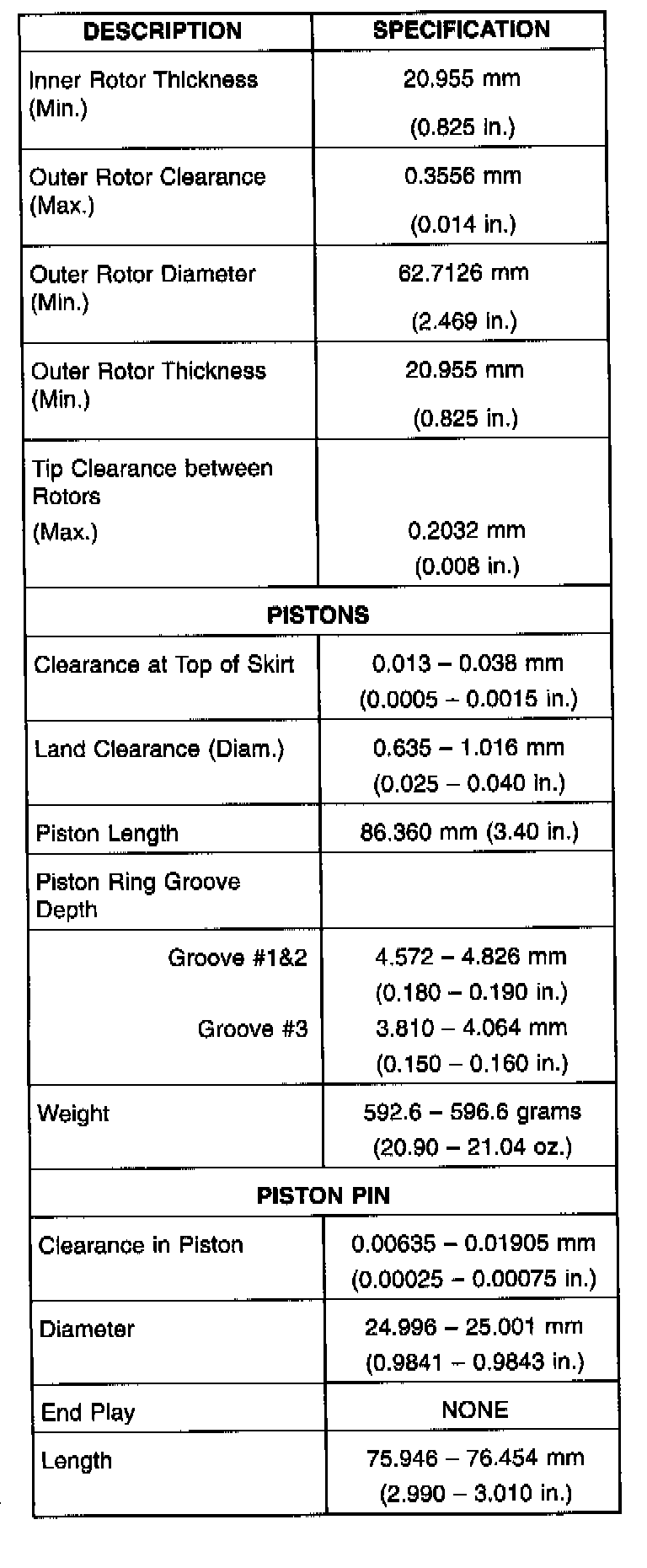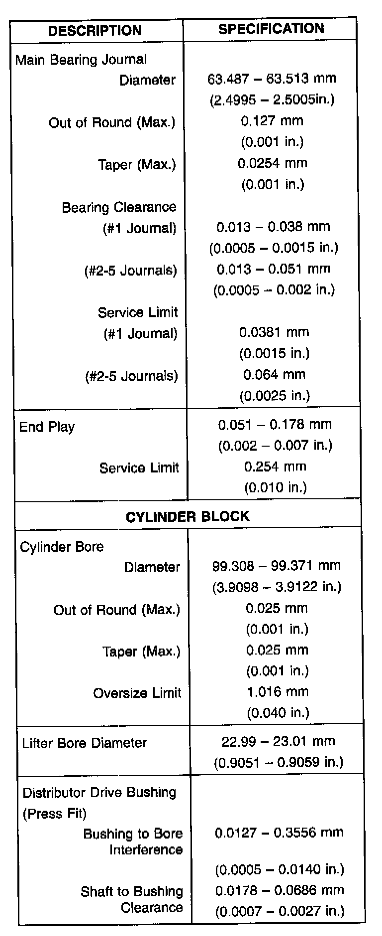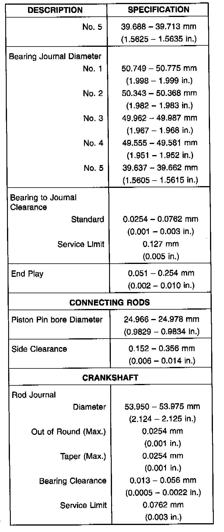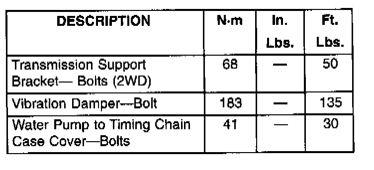 Torque and Service Specifications