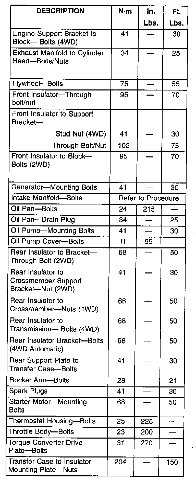 Torque Specifications
