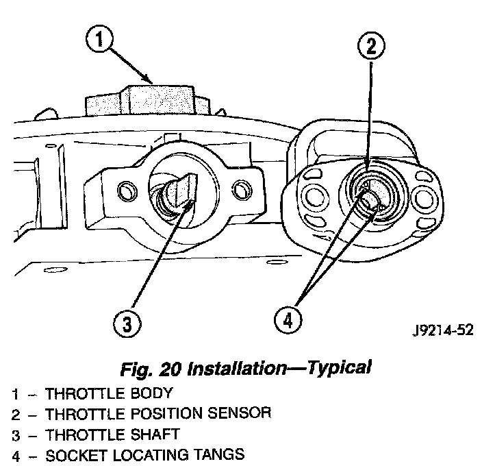 The throttle shaft end of the throttle body slides into a socket in the TPS. The TPS must be installed so that it can be rotated a few degrees. If the sensor will not rotate, install the sensor with the throttle shaft on the other side of the socket tangs. The TPS will be under slight tension when rotated.