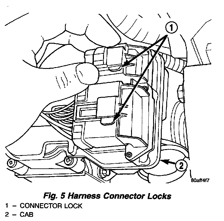 7. Push the harness connector locks to release the locks, then remove the connectors from the CAB.