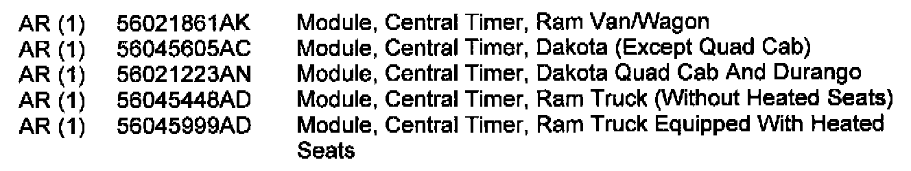 2. Install the new [1][2]CTM (see Parts Required section). Refer to the appropriate Service Manual, Group 8E, [1][2]Central Timer Module, or the service information available in MDS2, for information regarding CTM installation procedures.