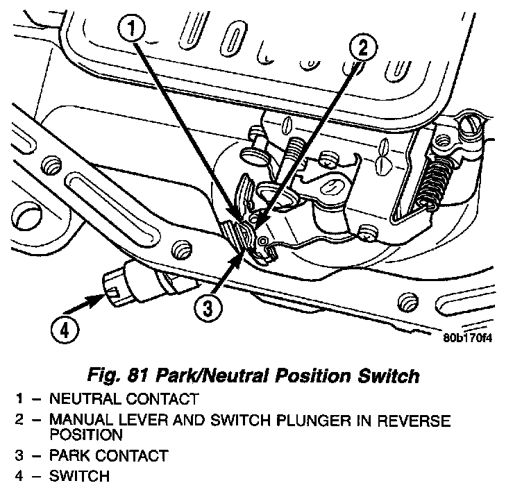 1. Move shift lever to Park and Neutral positions. Verify that switch operating lever fingers are centered in switch opening in case (Fig. 81).