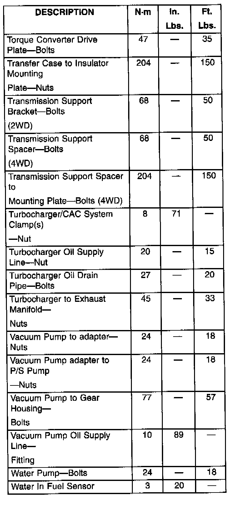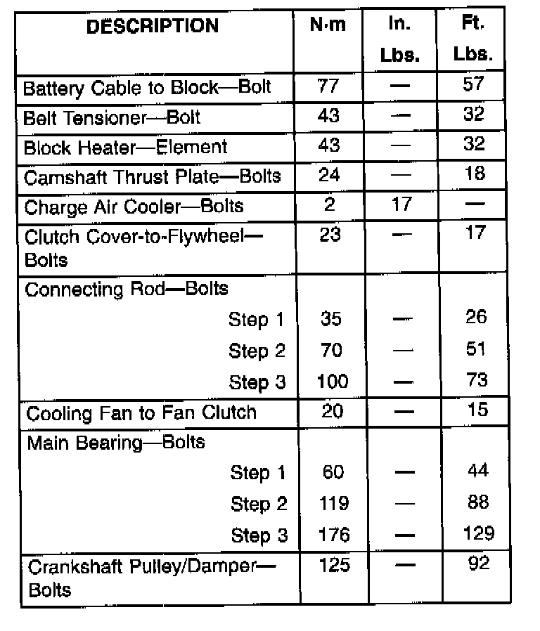 Engine Torque Specifications