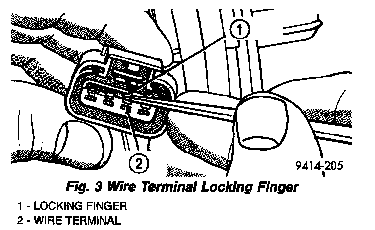 3. Using a small screwdriver lift locking finger away from terminal and push terminal out of connector.