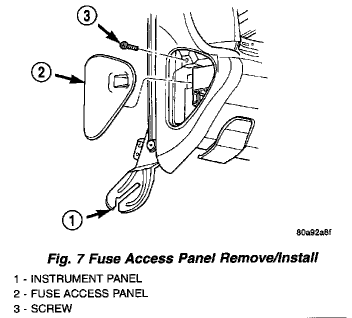 2. Remove the fuse access panel by unsnapping it from the left outboard end of the instrument panel (Fig. 7).