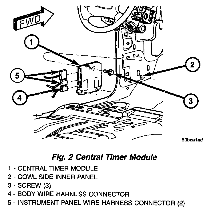 NOTE: Before replacing a Central Timer Module (CTM), use a DRB III scan tool to retrieve the current settings for the CTM programmable features. Refer to the appropriate diagnostic information. These settings should be duplicated in the replacement CTM using the DRB III scan tool before returning the vehicle to service.