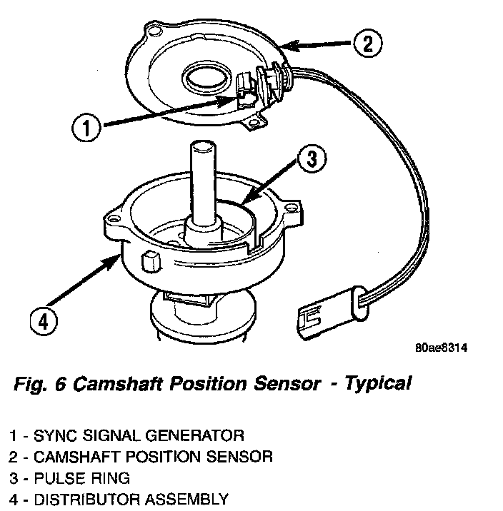 6. Lift the camshaft position sensor assembly from the distributor housing.