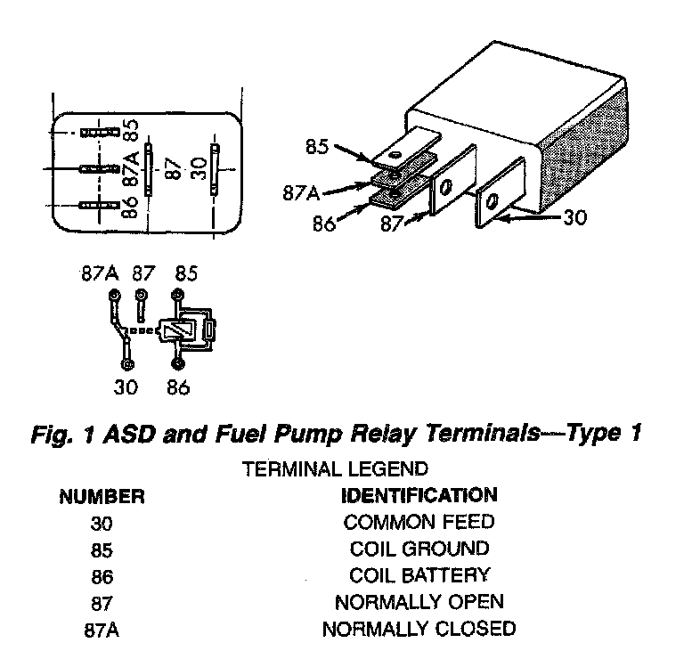 Fig.1 ASD And Fuel Pump Relay Terminals - Type 1: