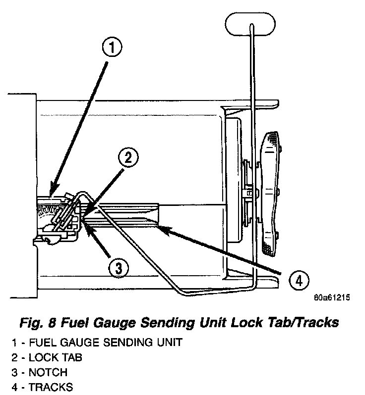 Fig. 8 Fuel Gauge Sending Unit Lock Tab/Tracks: