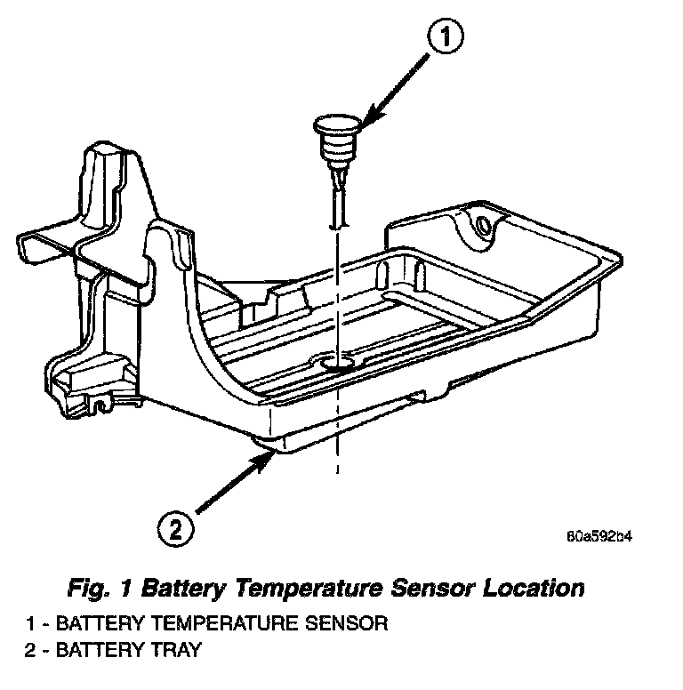 The battery temperature sensor is located under vehicle battery (Fig. 1) and is attached to a mounting hole on battery tray.
