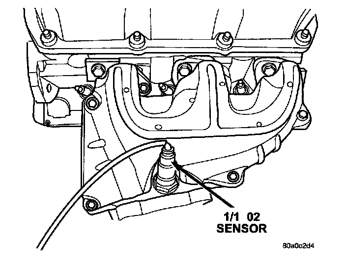 The upstream oxygen sensor threads into the outlet flange of the exhaust manifold.