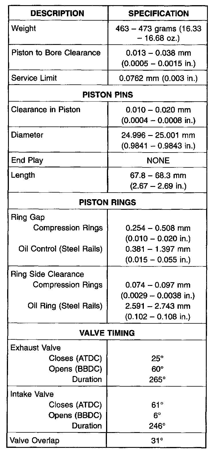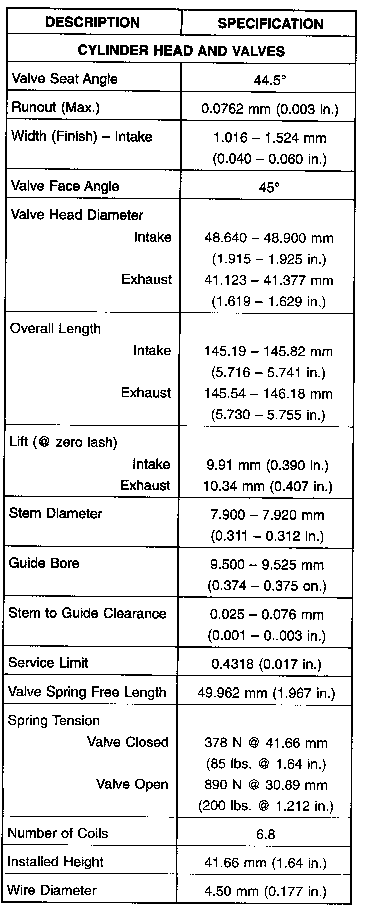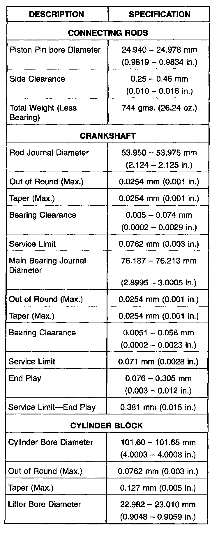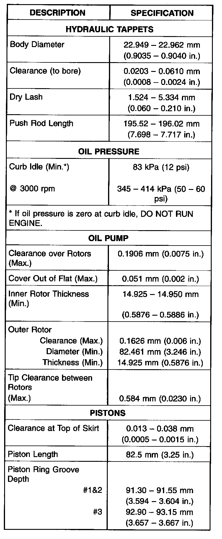 Engine Specifications
