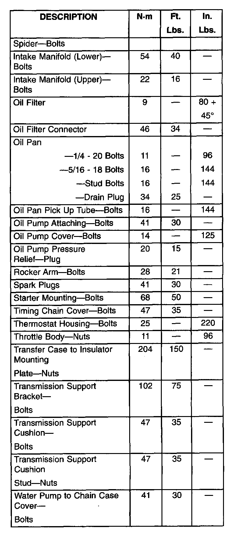 Torque Specifications