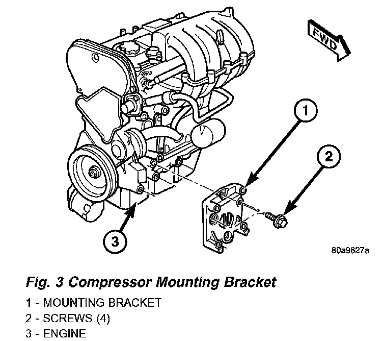 2. Remove the four screws that secure the compressor mounting bracket to the engine.