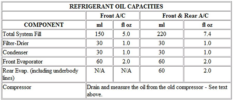 Refrigerant Oil Capacities Chart: