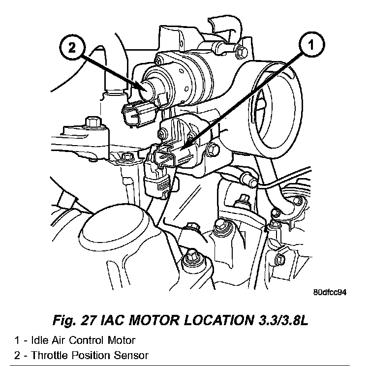 Fig. 27 IAC Motor Location 3.3/3.8L: