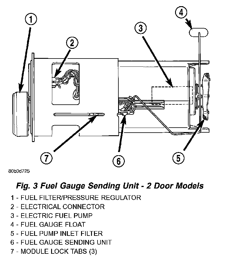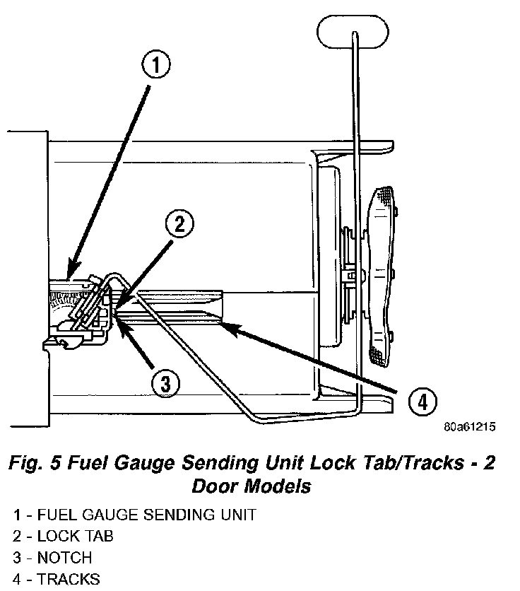 Fig. 5 Fuel Gauge Sending Unit Lock Tab/Tracks - 2 Door Models: