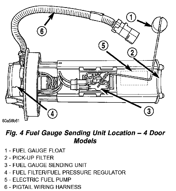 Fig. 4 Fuel Gauge Sending Unit Location - 4 Door Models: