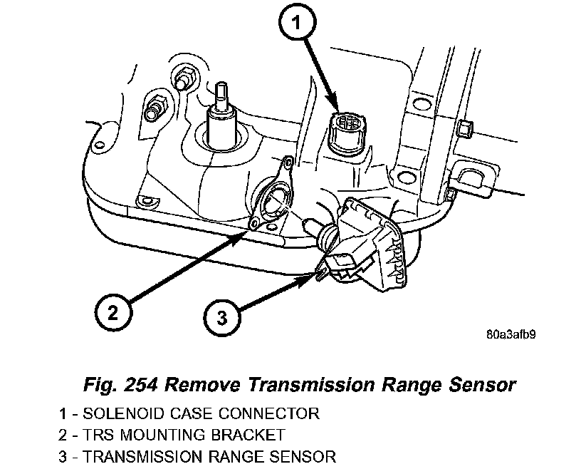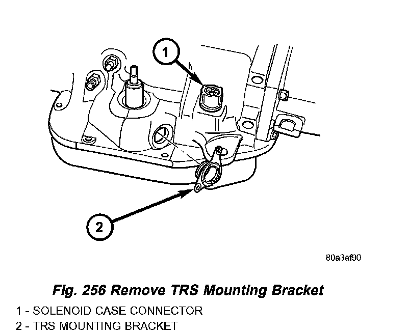 7. Remove the TRS mounting bracket (Fig. 256) from the transmission case.