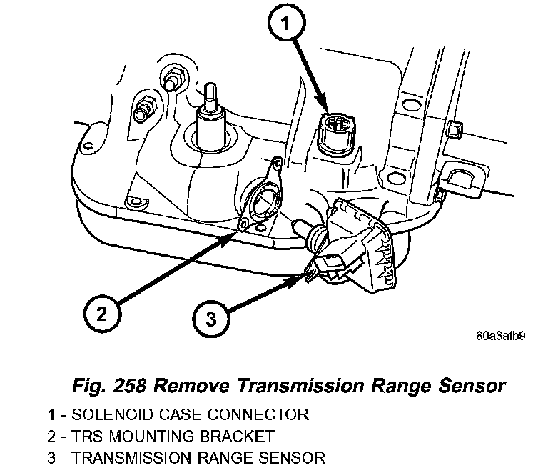 3. Install the TRS (Fig. 258) into the mounting bracket with the wiring connector facing the front of the transmission.