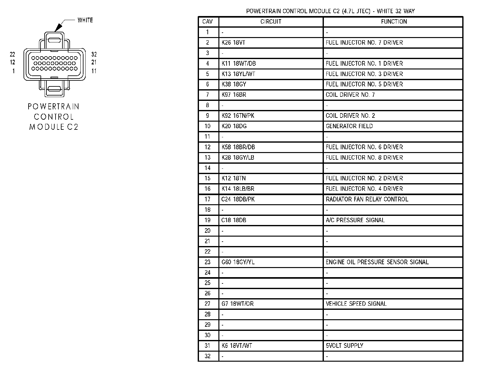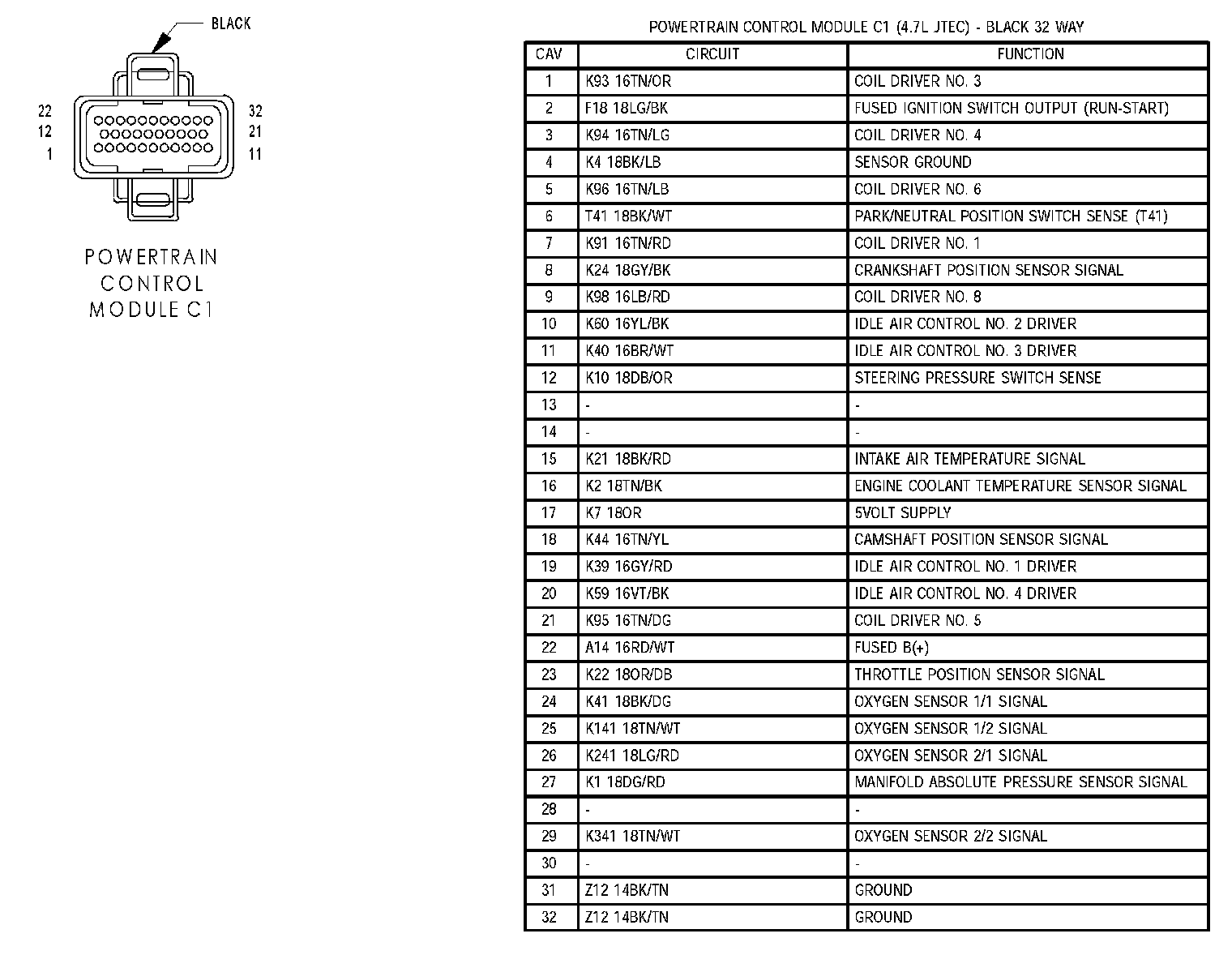 Powertrain Control Module C1 (4.7L JTEC):