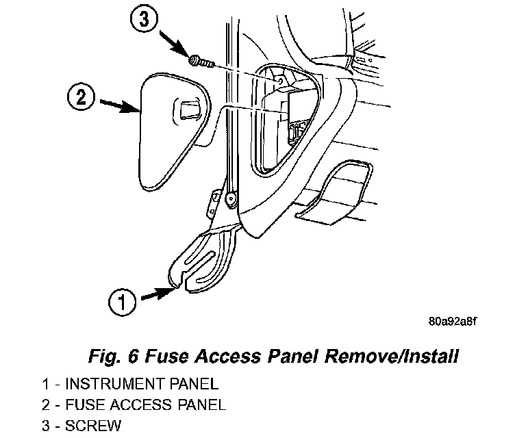 2. Remove the fuse access panel by unsnapping it from the left outboard end of the instrument panel (Fig. 6).