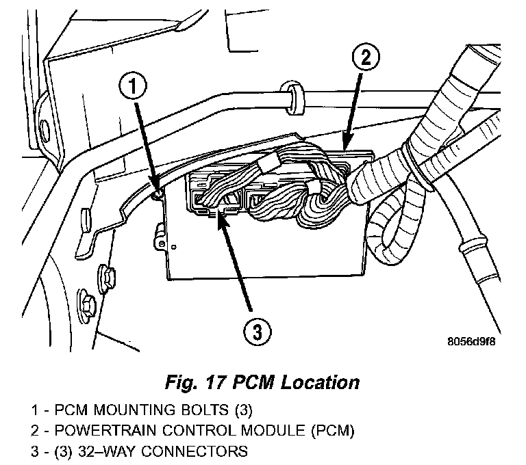 The Powertrain Control Module (PCM) is located in the engine compartment. The PCM is referred to as JTEC.