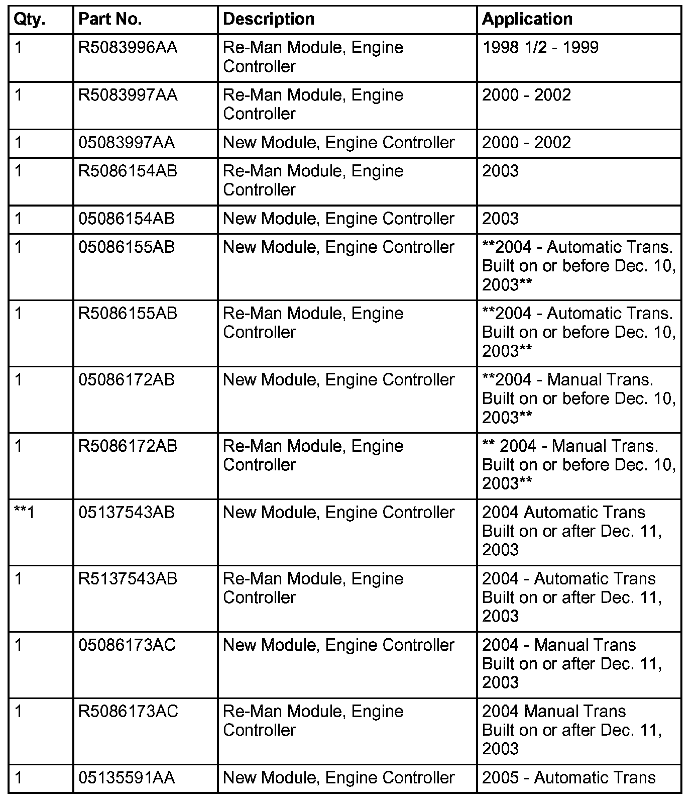 Mopar(R) is phasing out pre-programmed Cummins Diesel Engine Control Modules (ECM). New modules will no longer be pre-programmed when received from Mopar(R). Replacement of future ECM's will require programming utilizing the DRBIII(R) and TechCONNECT. 1998 1/2 - 2002 modules will cause the "Wait to Start" light to flash, indicating the module has not been programmed.