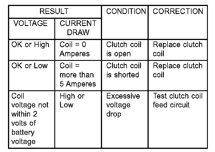 a. If the clutch coil current reading is five amperes or more, the coil is shorted and should be replaced.