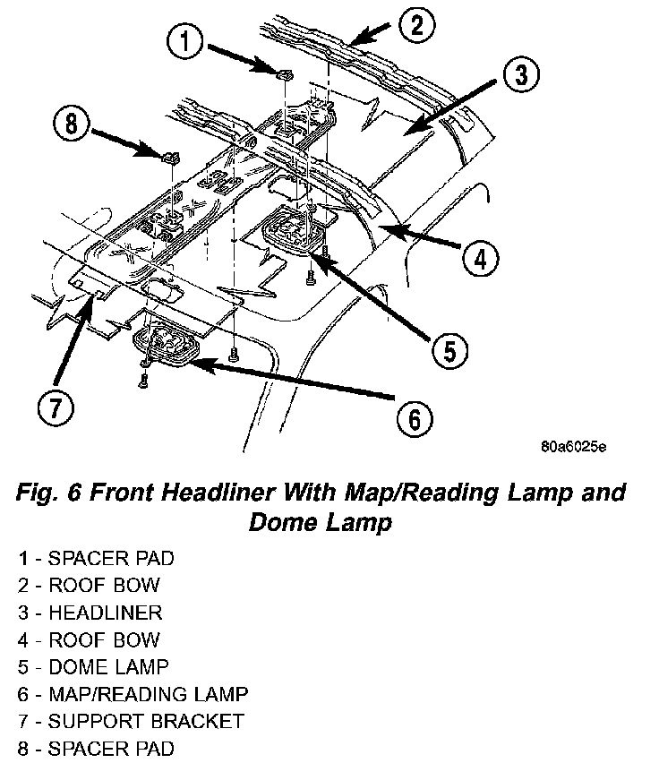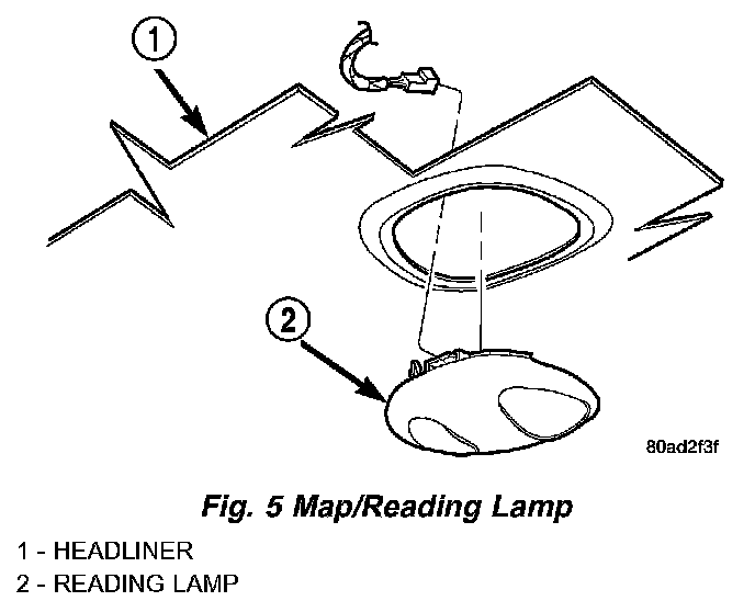 Fig. 6 Front Headliner With Map/Reading Lamp And Dome Lamp: