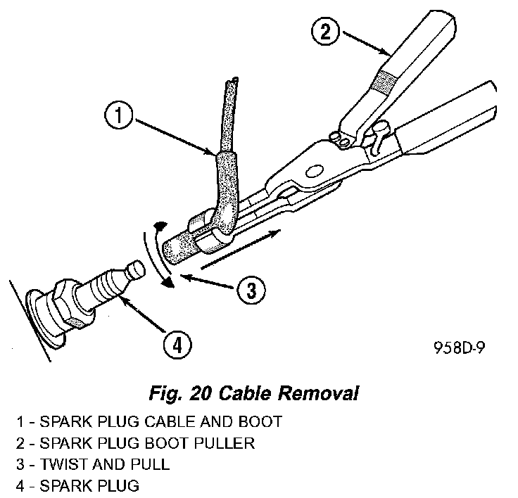 4. Always remove spark plug or ignition coil cables by grasping at the cable boot. Turn the cable boot 1/2 turn and pull straight back in a steady motion. Never pull directly on the cable. Internal damage to cable will result.