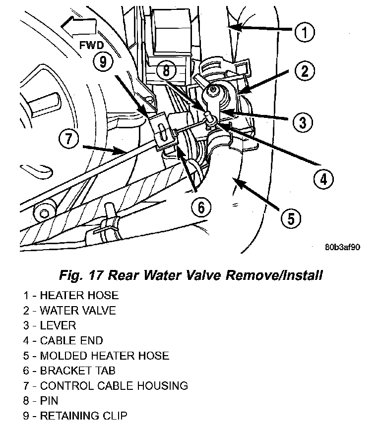 The rear water valve is used only on models with the optional rear heater-A/C unit. The water valve can be removed without removing the rear heater- A/C unit from the vehicle.