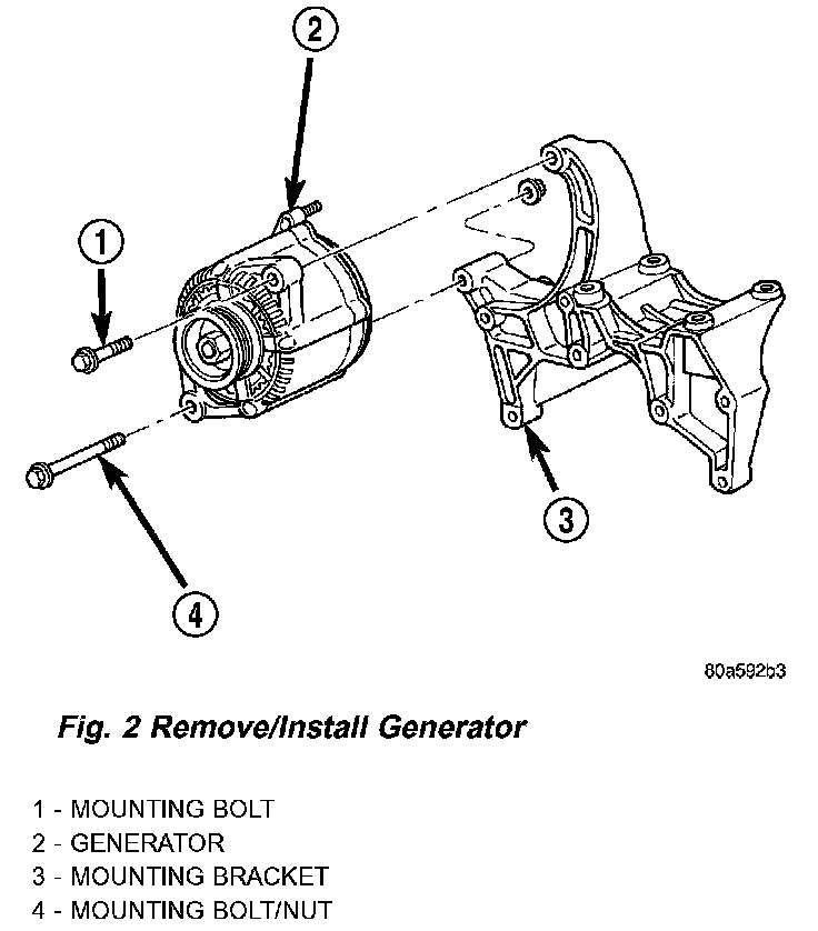 Fig. 2 Remove/Install Generator - 3.9L/5.2L/5.9L Engines: