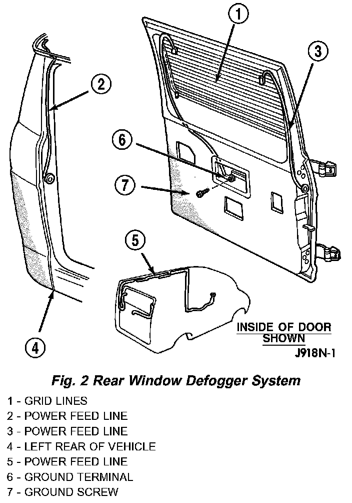 - Rear window grid lines (all grid lines would have to be broken or one of the feed wires disconnected for the entire system to be inoperative).