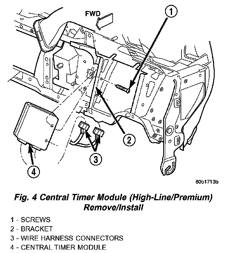 Fig. 4 Central Timer Module (High-Line/Premium) Remove/Install:
