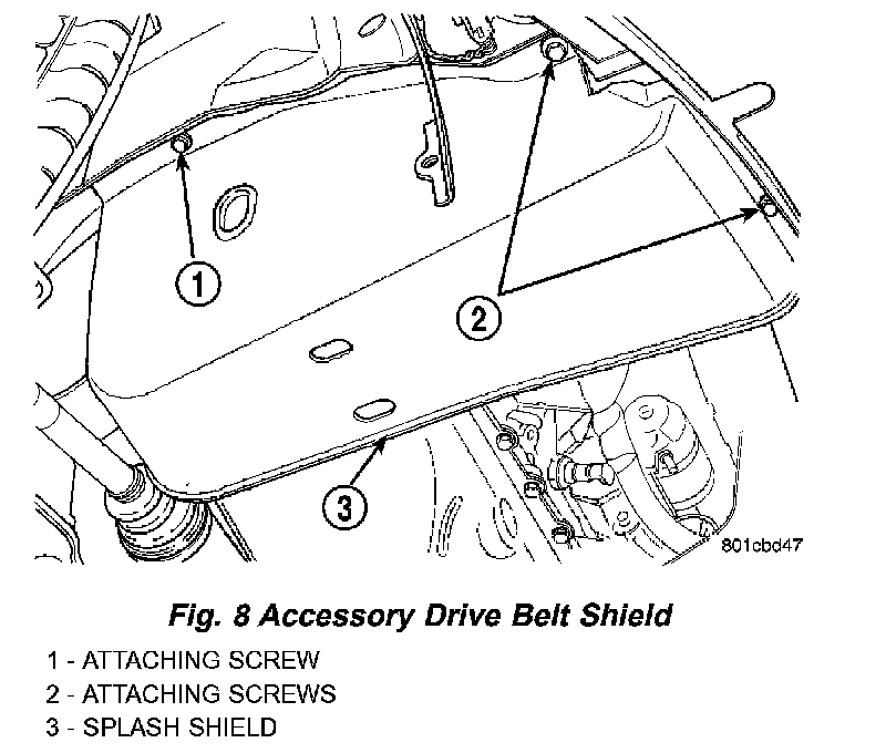 4. Install drive belt shield (Fig. 8) and lower vehicle.