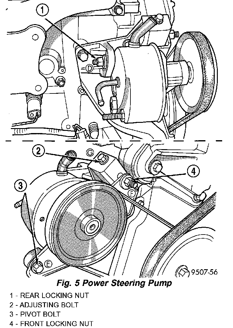 1. Install belt over crankshaft and power steering pump pulleys (Fig. 7).