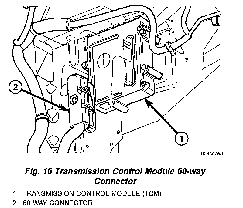 5. Disconnect TCM 60-way connector (Fig. 16).