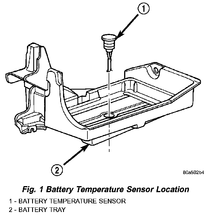 The battery temperature sensor is located under vehicle battery (Fig. 1) and is attached to a mounting hole on battery tray.
