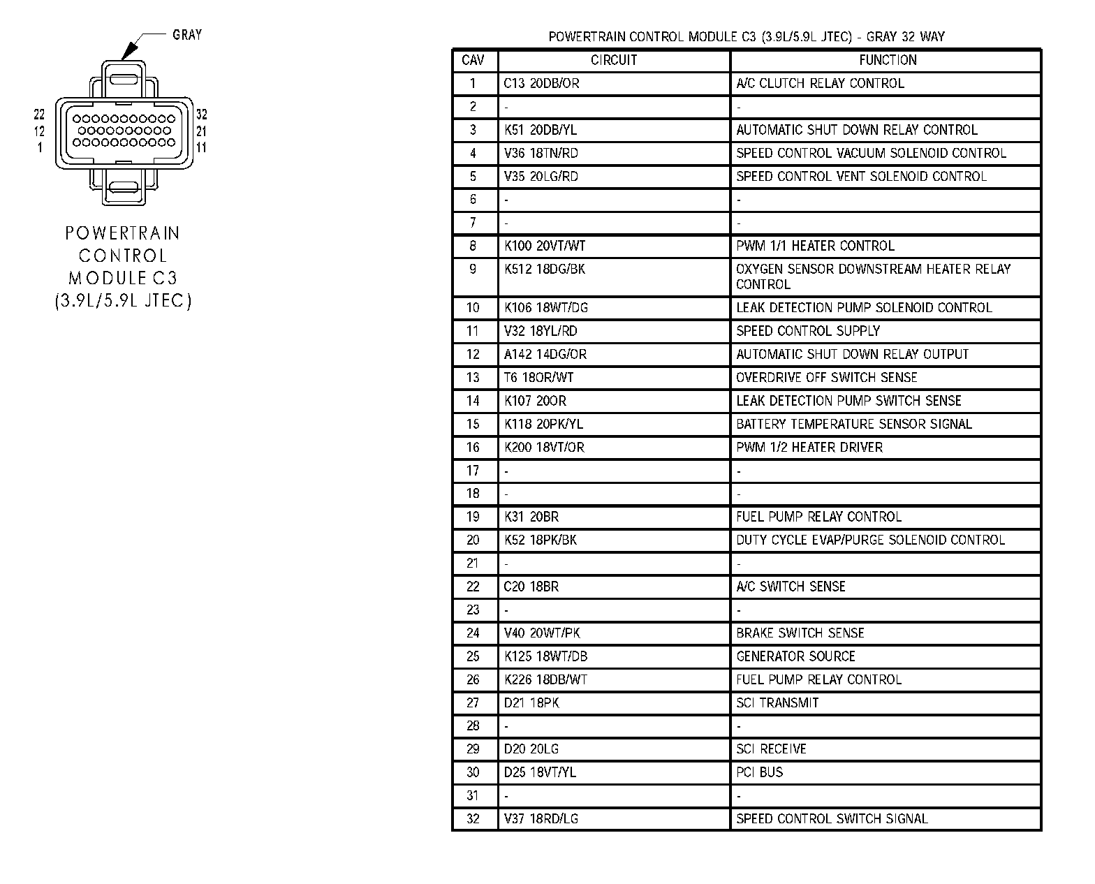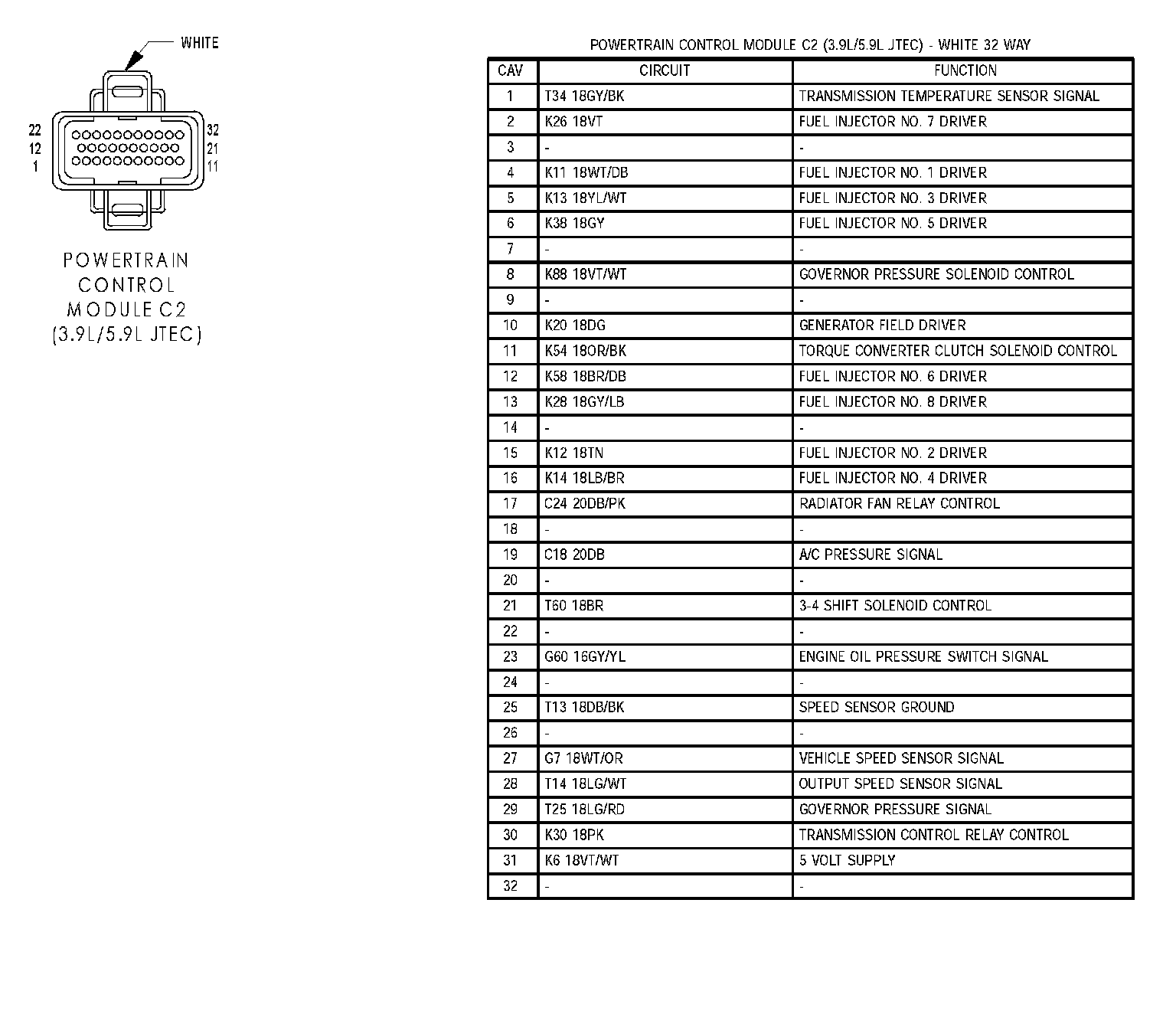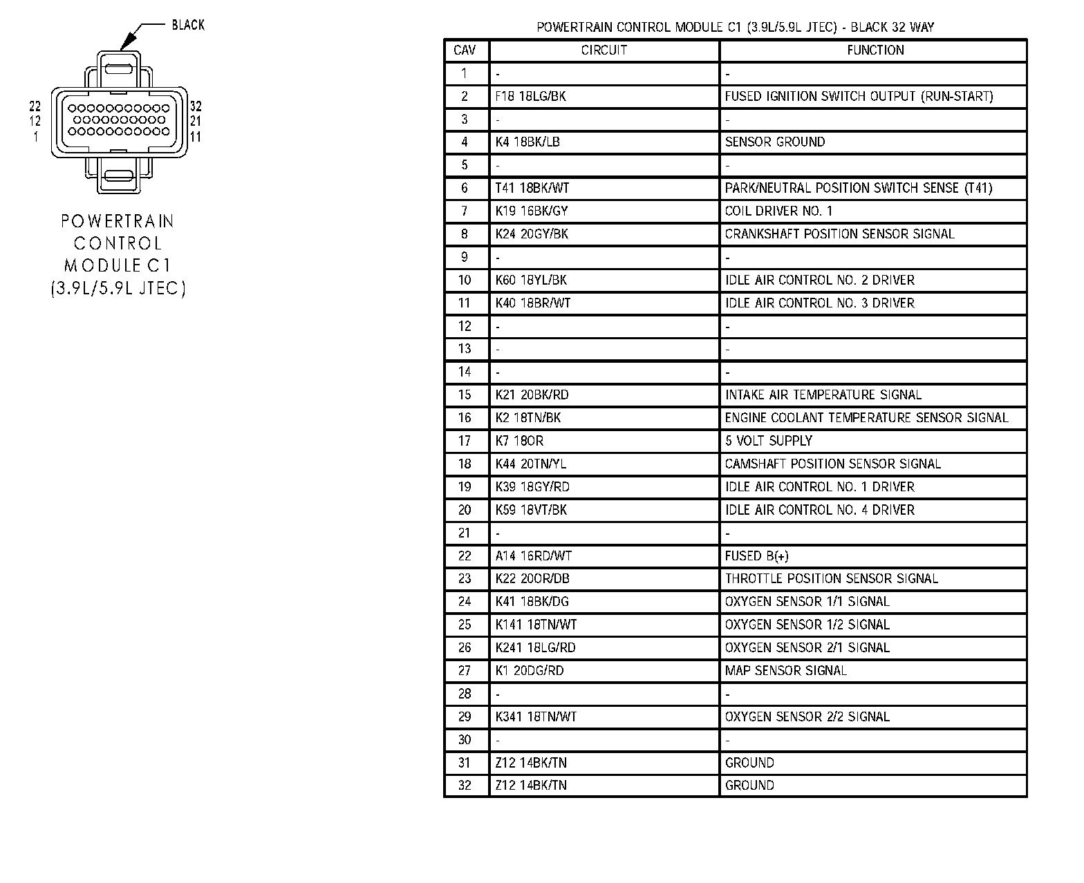 Powertrain Control Module C1 (3.9L/5.9L JTEC):