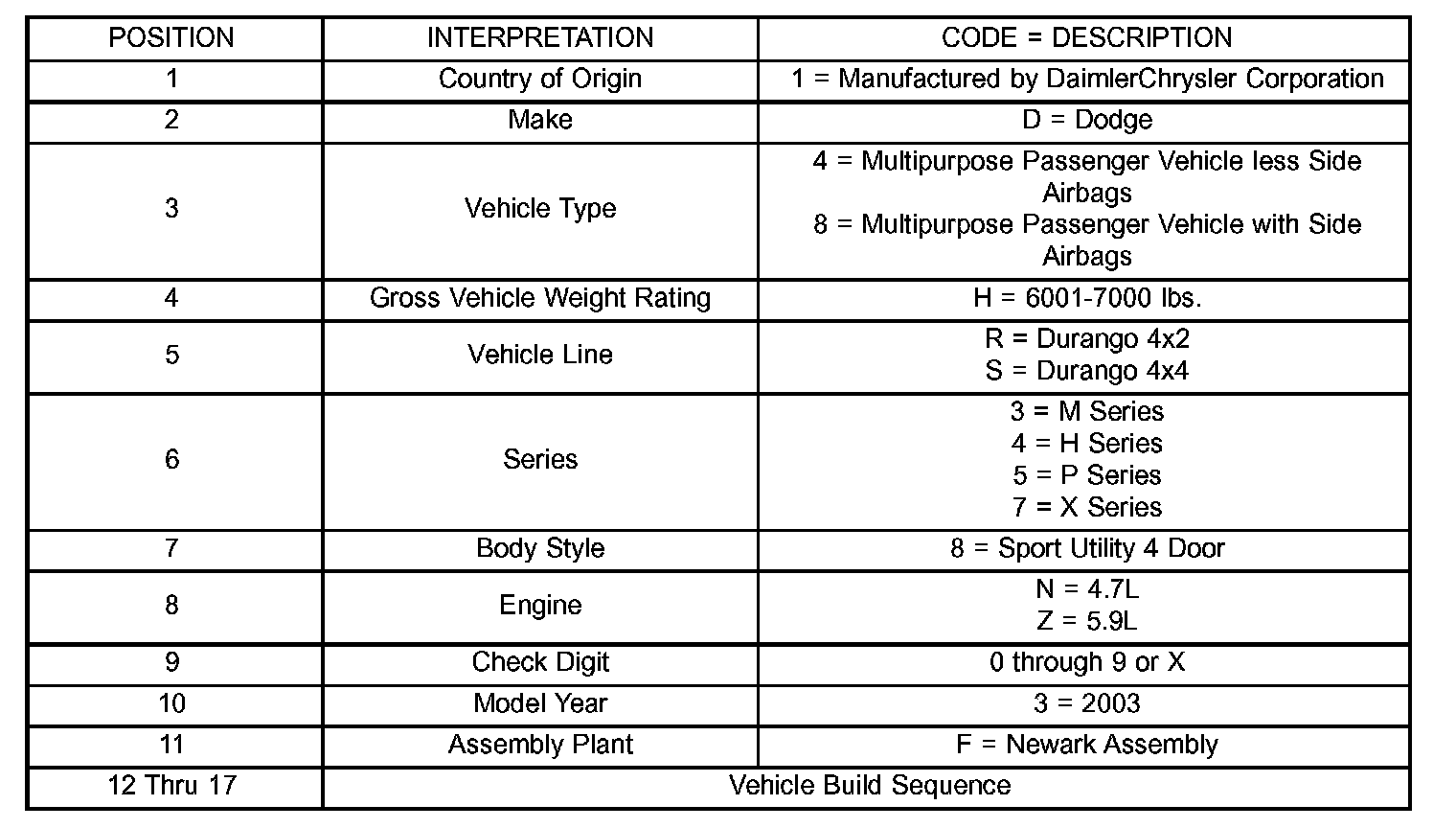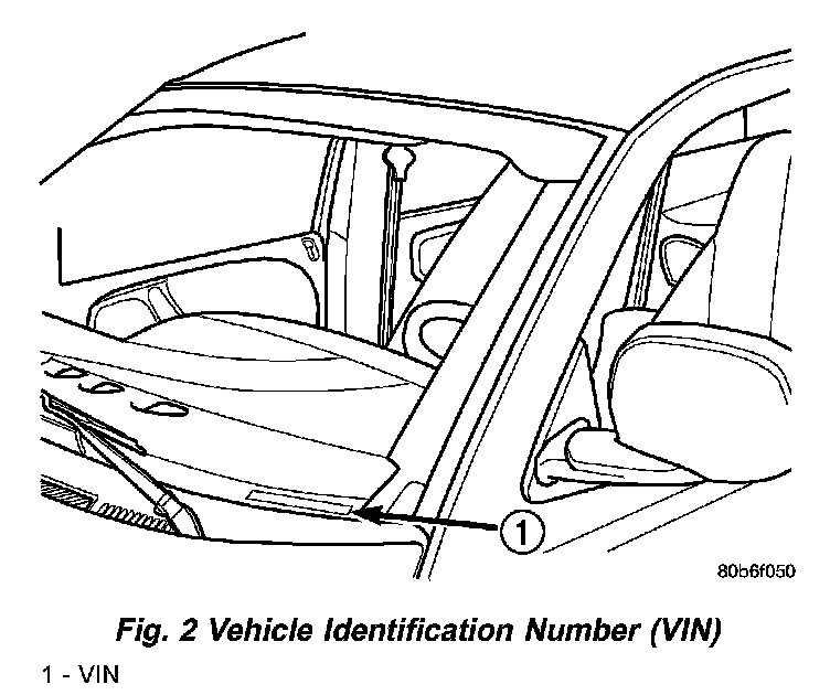 The Vehicle Identification Number (VIN) plate is attached to the top left side of the instrument panel (Fig. 2). The VIN contains 17 characters that provide data concerning the vehicle. Refer to the decoding chart to determine the identification of a vehicle.