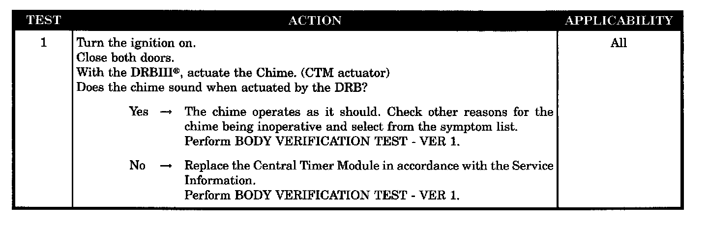 CHIME INOPERATIVE AT ALL TIMES