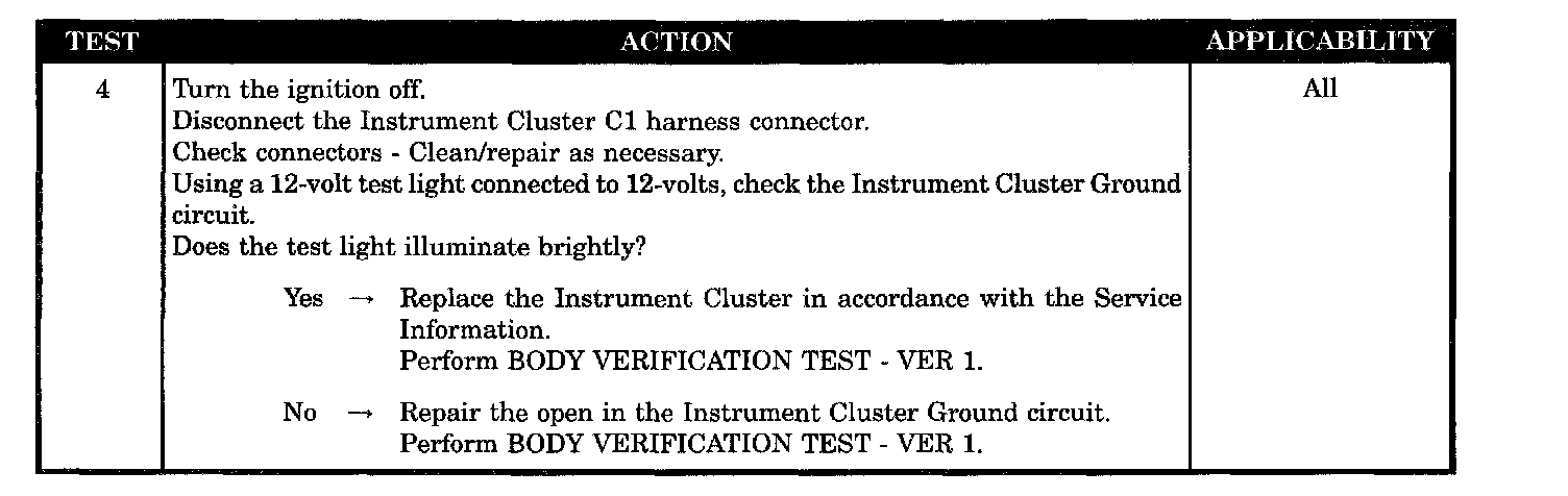 - Instrument cluster ground circuit open